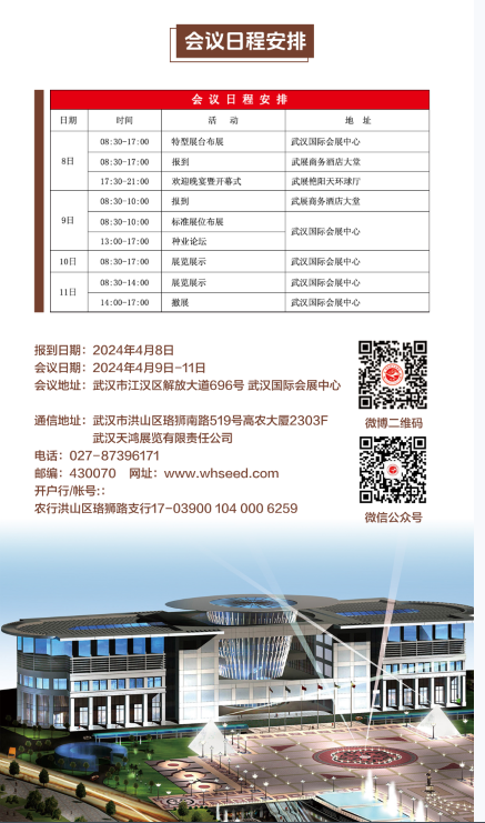 核心提示:2024年武漢種子交易會時間:4月8-11日