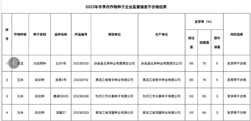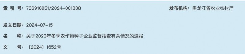 關于2023年冬季農作物種子企業監督抽查有關情況的通報