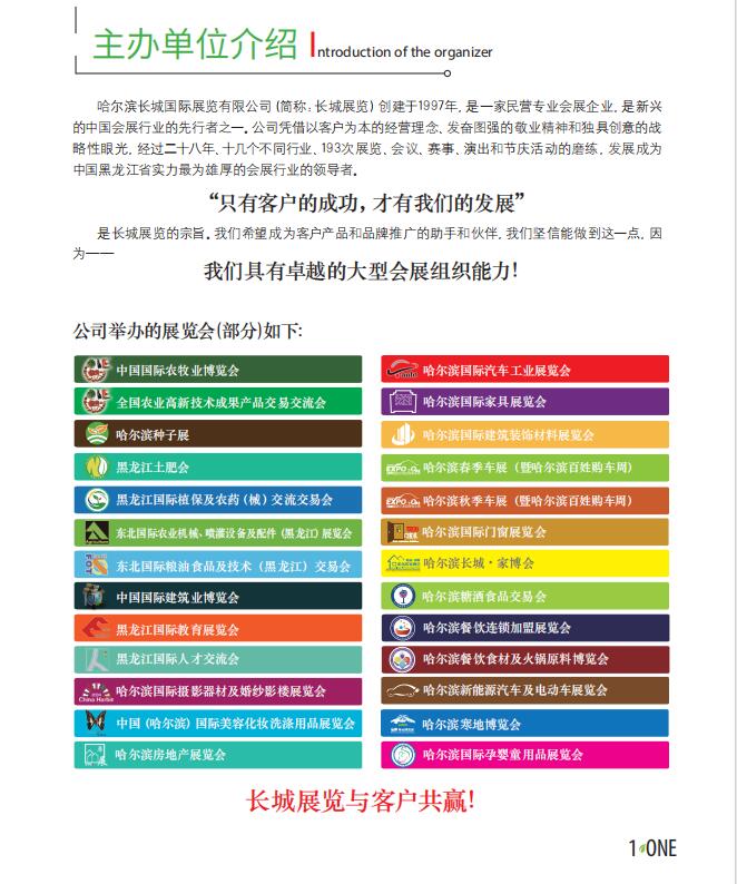 核心提示:哈爾濱長城國際展覽有限公司(簡稱:長城展覽)創(chuàng)建于1997年,是一家民營專業(yè)會展企業(yè),是新興的中國會展行業(yè)的先行者之一。公司憑借以客戶為本的經營理念、發(fā)奮圖強的敬業(yè)精神和獨具創(chuàng)意的戰(zhàn)略性眼光,經過二十八年、十幾個不同行業(yè)、193次展覽、會議、賽事、演出和節(jié)慶活動的磨練,發(fā)展成為中國黑龍江省實力最為雄厚的會展行業(yè)的領導者。