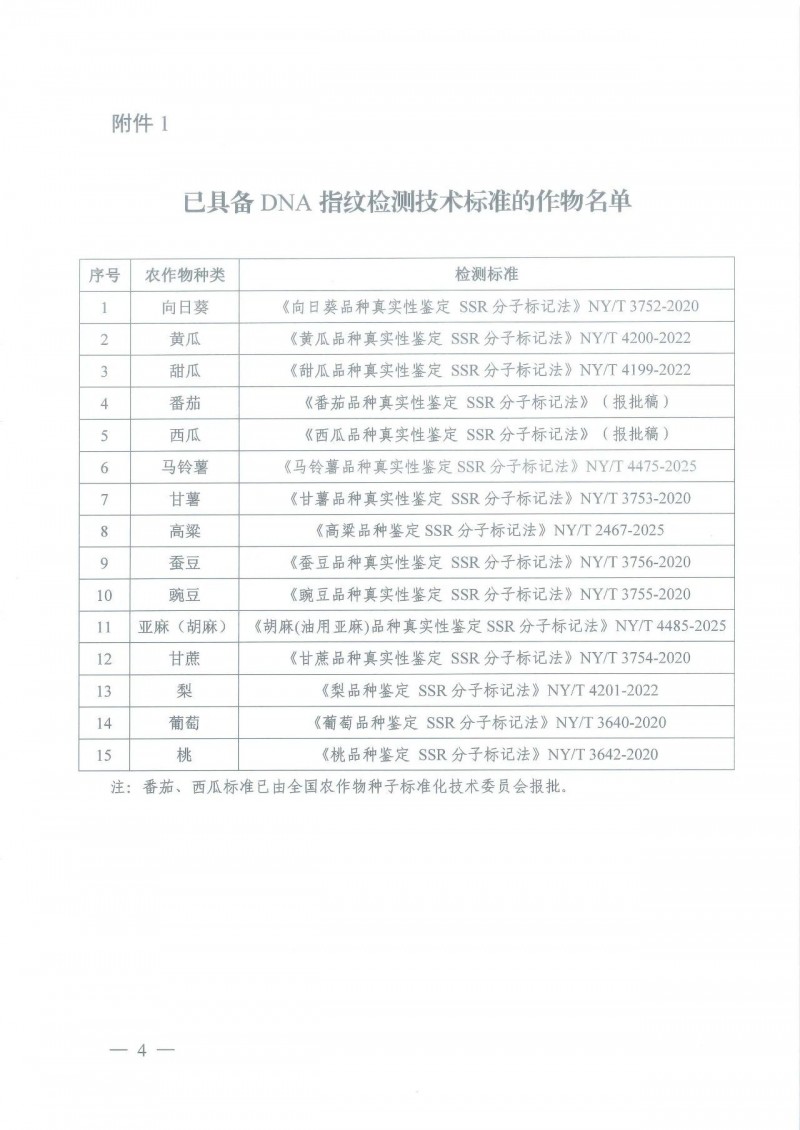 附件:1. 已具備DNA指紋檢測技術(shù)標準的作物名單